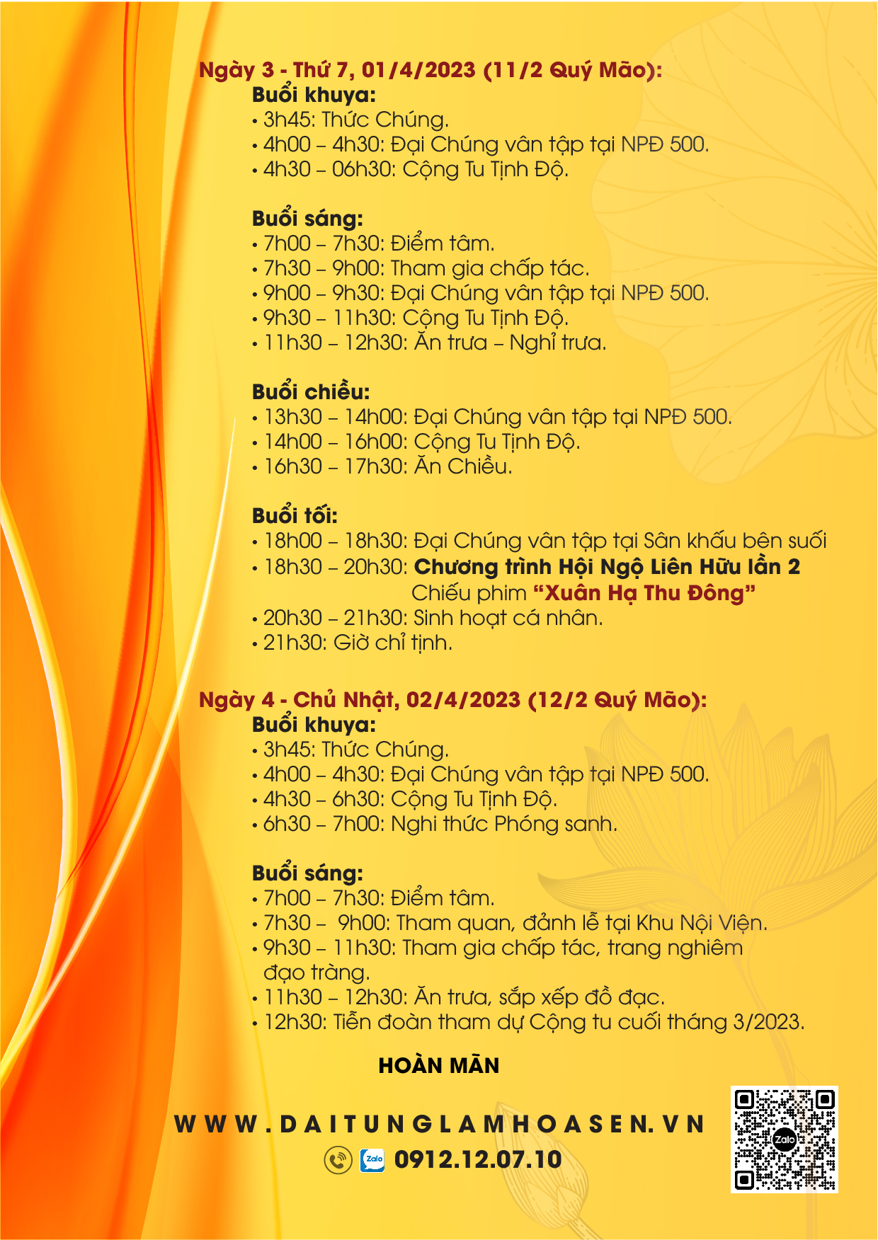 4. Nội dung chương trình Cộng Tu Tịnh Độ cuối tháng 03/2023 - PL.2567: