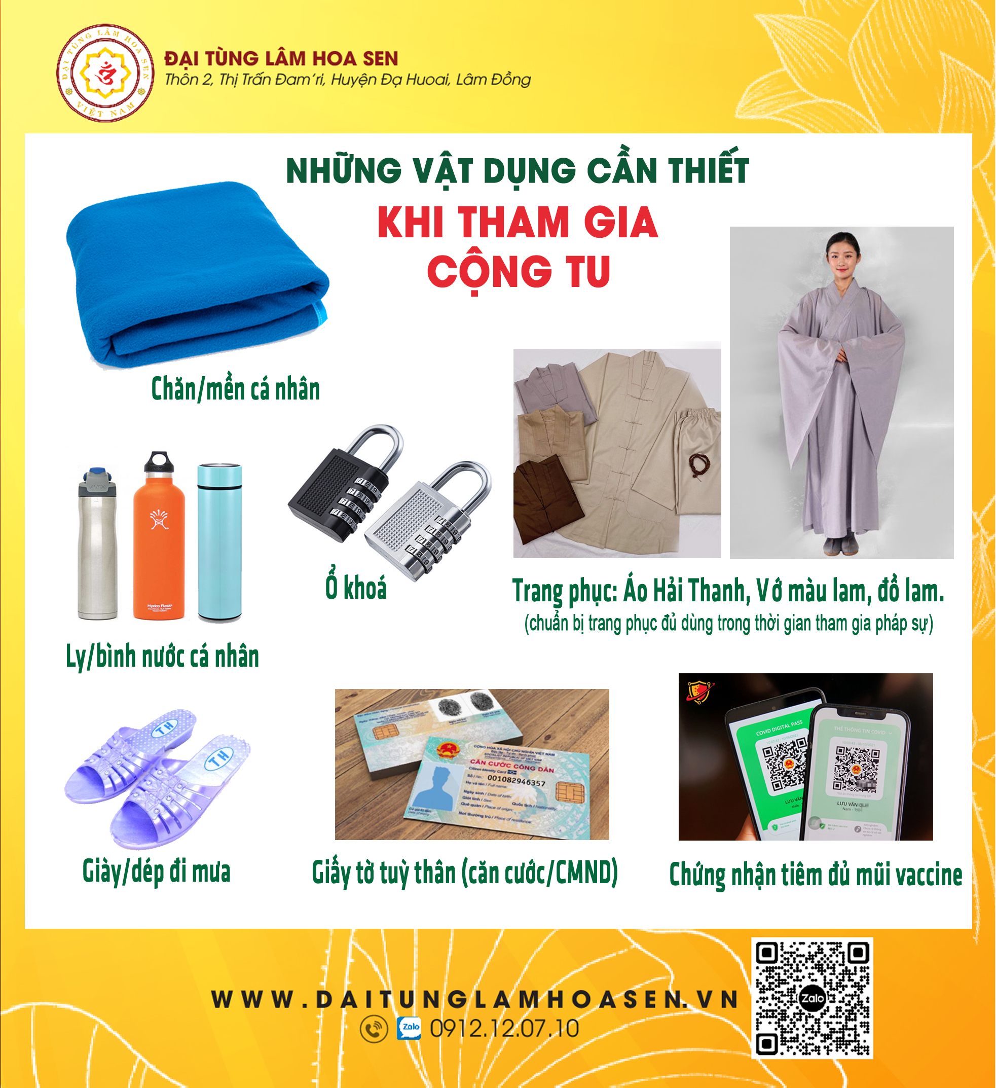 5. Các vật dụng Quý Liên hữu cần chuẩn bị & mang theo khi tham dự Khóa tu: