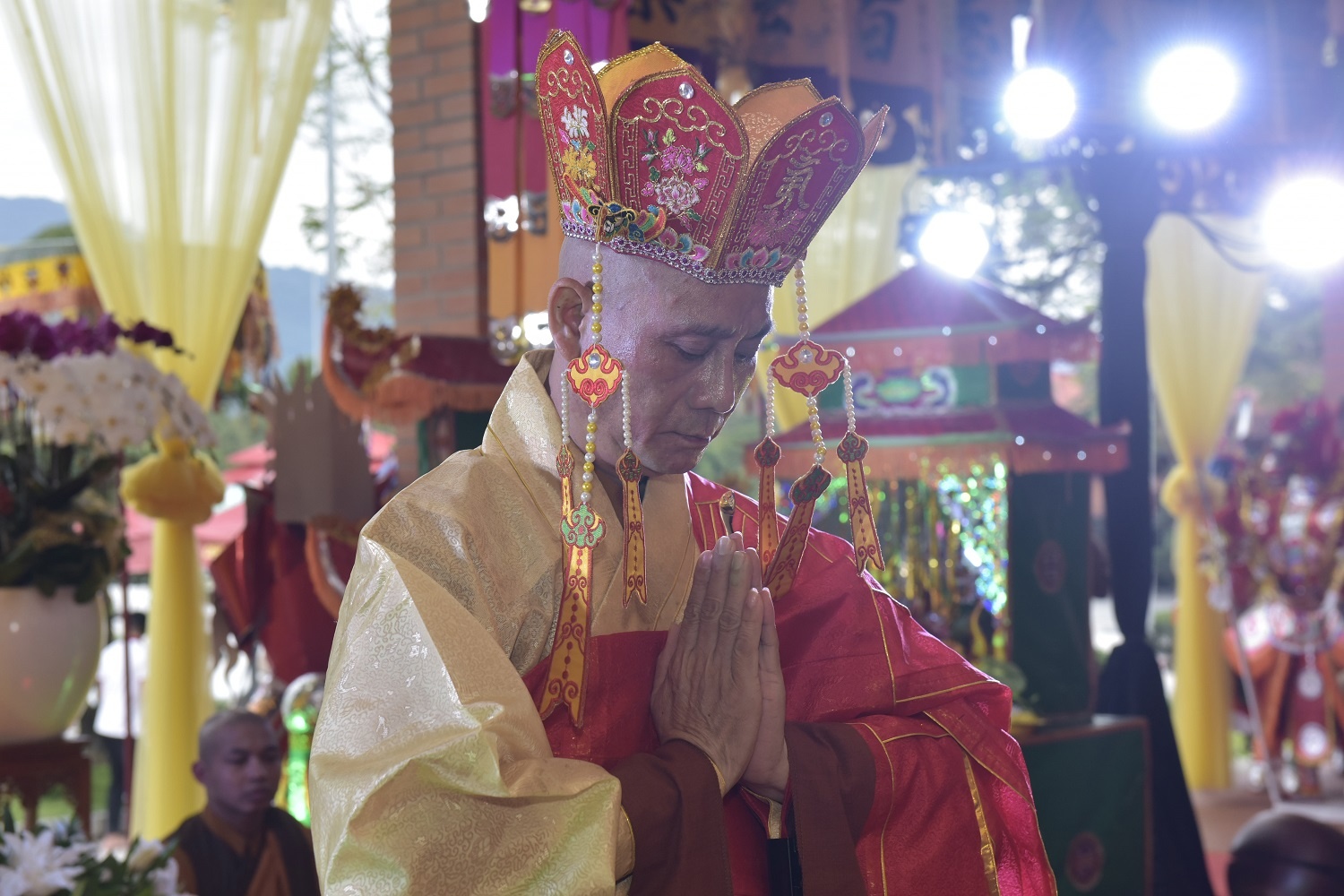 Dưới sự chủ trì của Thầy Thượng Toạ Thích Minh Thanh, ông Lê Phước Vũ - Người khai sơn, sáng lập Chùa Đại Tùng Lâm Hoa Sen dâng lễ cử hành nghi thức Cúng Khai phương - Phá ngục