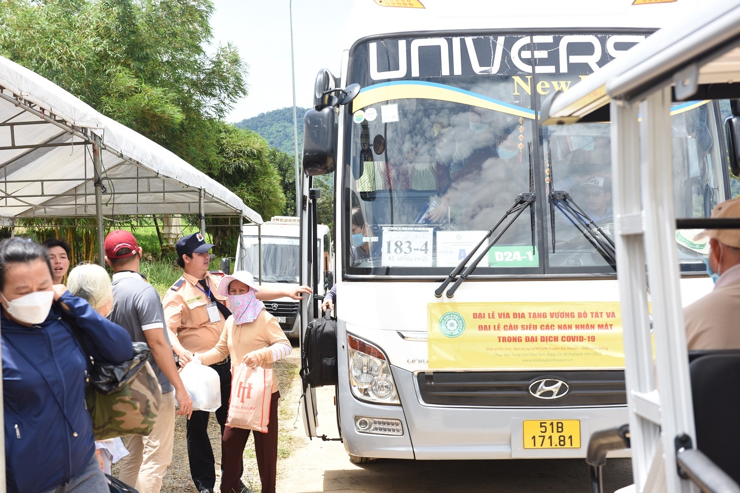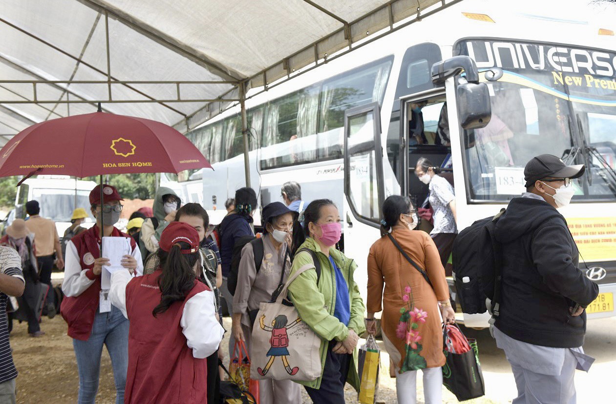 Ban Tổ chức đưa Phật tử, nhân dân di chuyển vào bên trong nội khu bằng xe trung chuyển