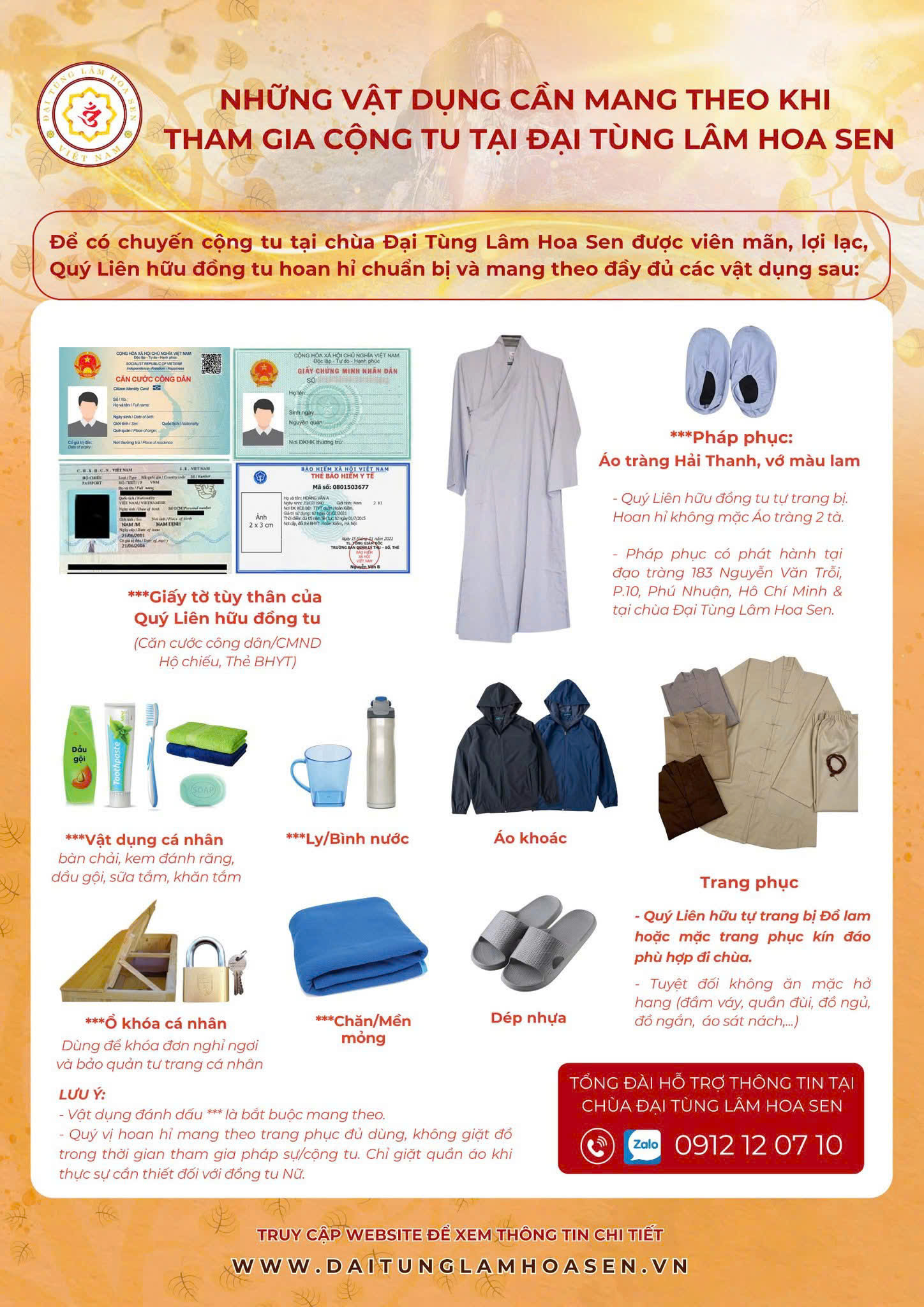 5. Các vật dụng Quý Liên hữu cần chuẩn bị & mang theo khi tham gia Cộng tu: