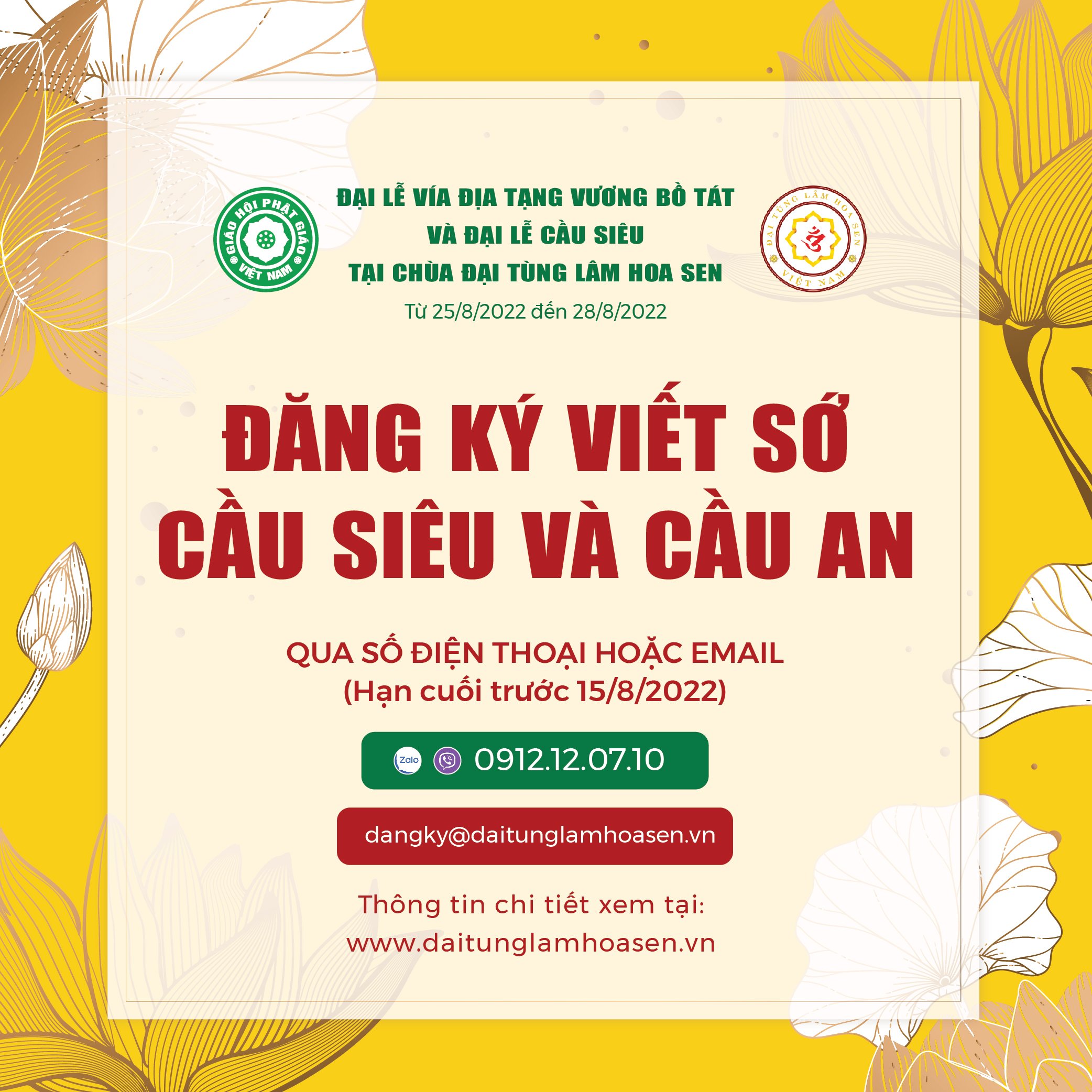 - Thời gian ghi sớ cầu siêu và cầu an: Từ ngày 1/7/2022 – 15/8/2022