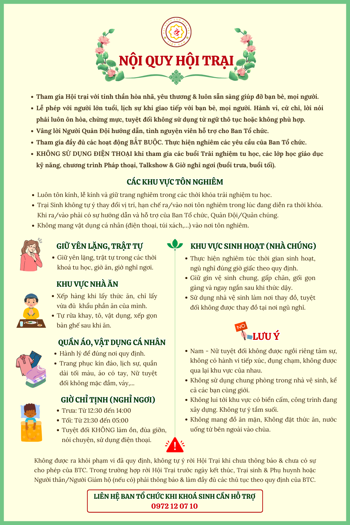 7. Nội quy khi tham gia Hội Trại "Vườn Ươm Thiện Nhân tại chùa Đại Tùng Lâm Hoa Sen