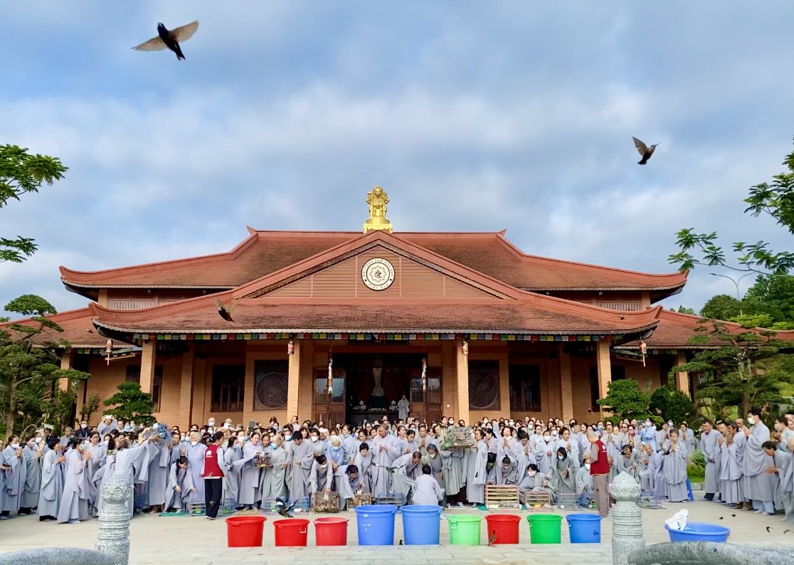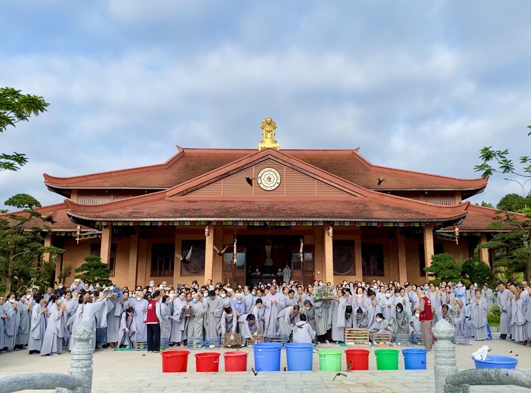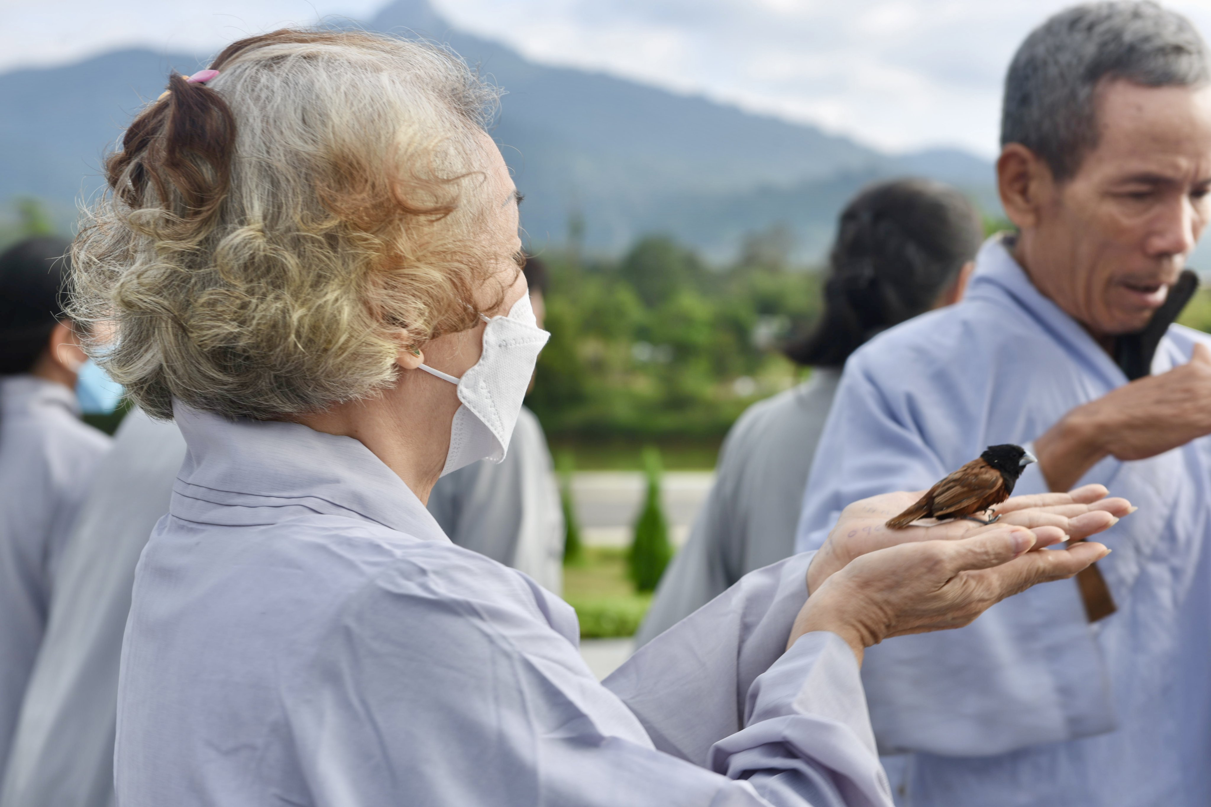 During the ceremony of releasing living beings, the entire ashram concentrated their minds on the wish and recites the Three Jewels Refuge for all sentient beings, bestowing the Dharma name "Wonderful Sound" - the miraculous sound of the holy name "Namo Amitabha Buddha".
