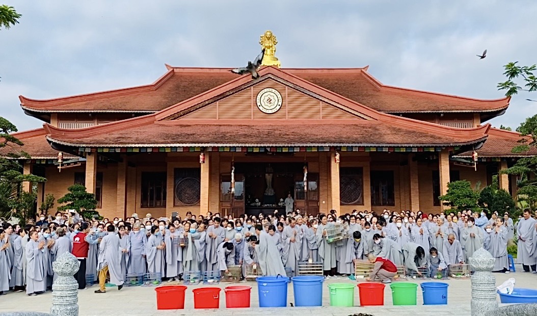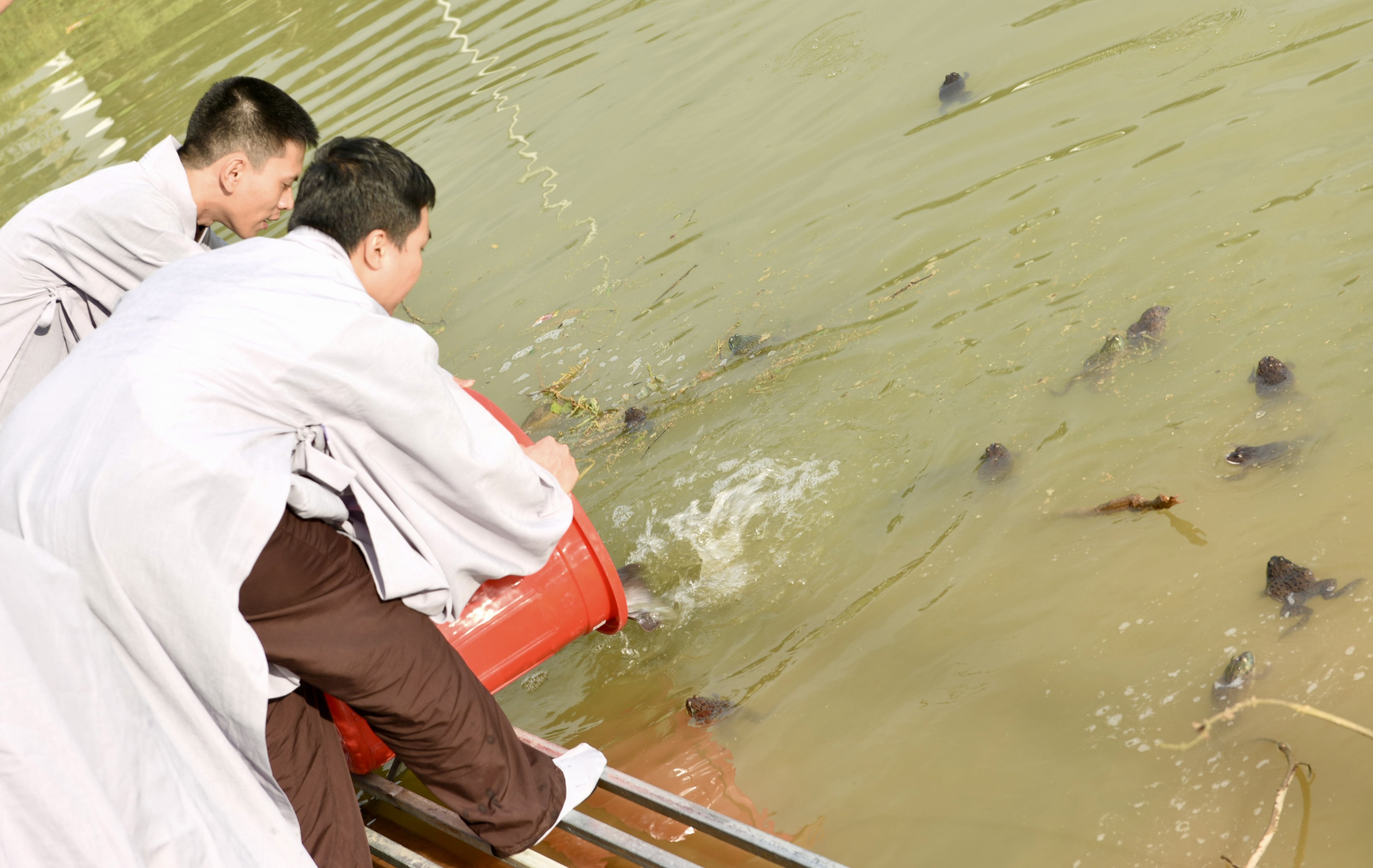 Looking at hundreds of birds, fish, frogs, eels, etc. to continue their small free life, on the face of each Buddhist is boundless joy and satisfaction in the heart for having contributed a little bit of pure talent in saving lives for sentient beings.