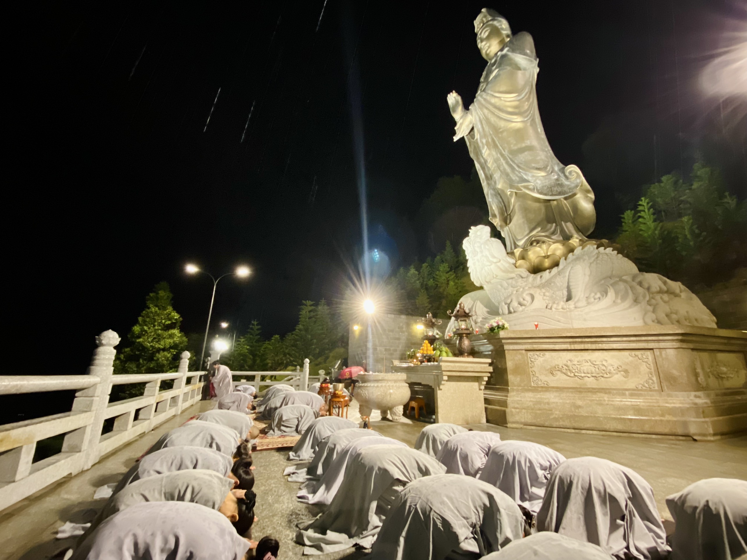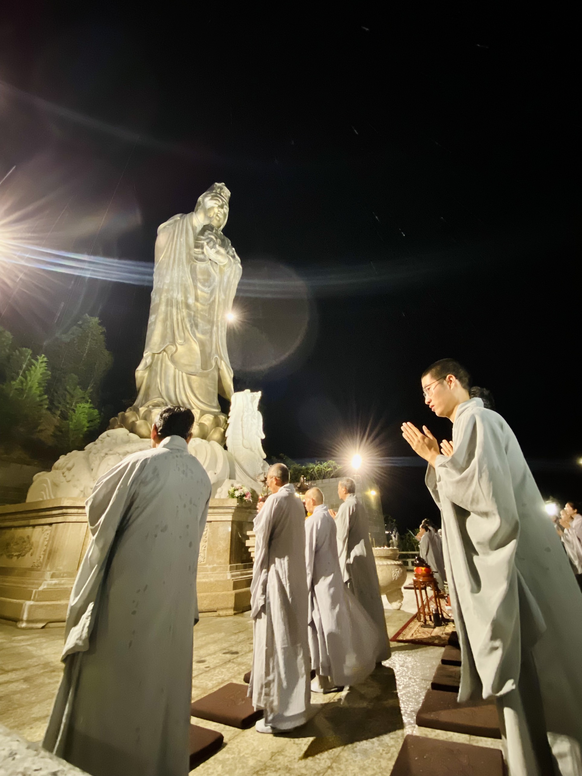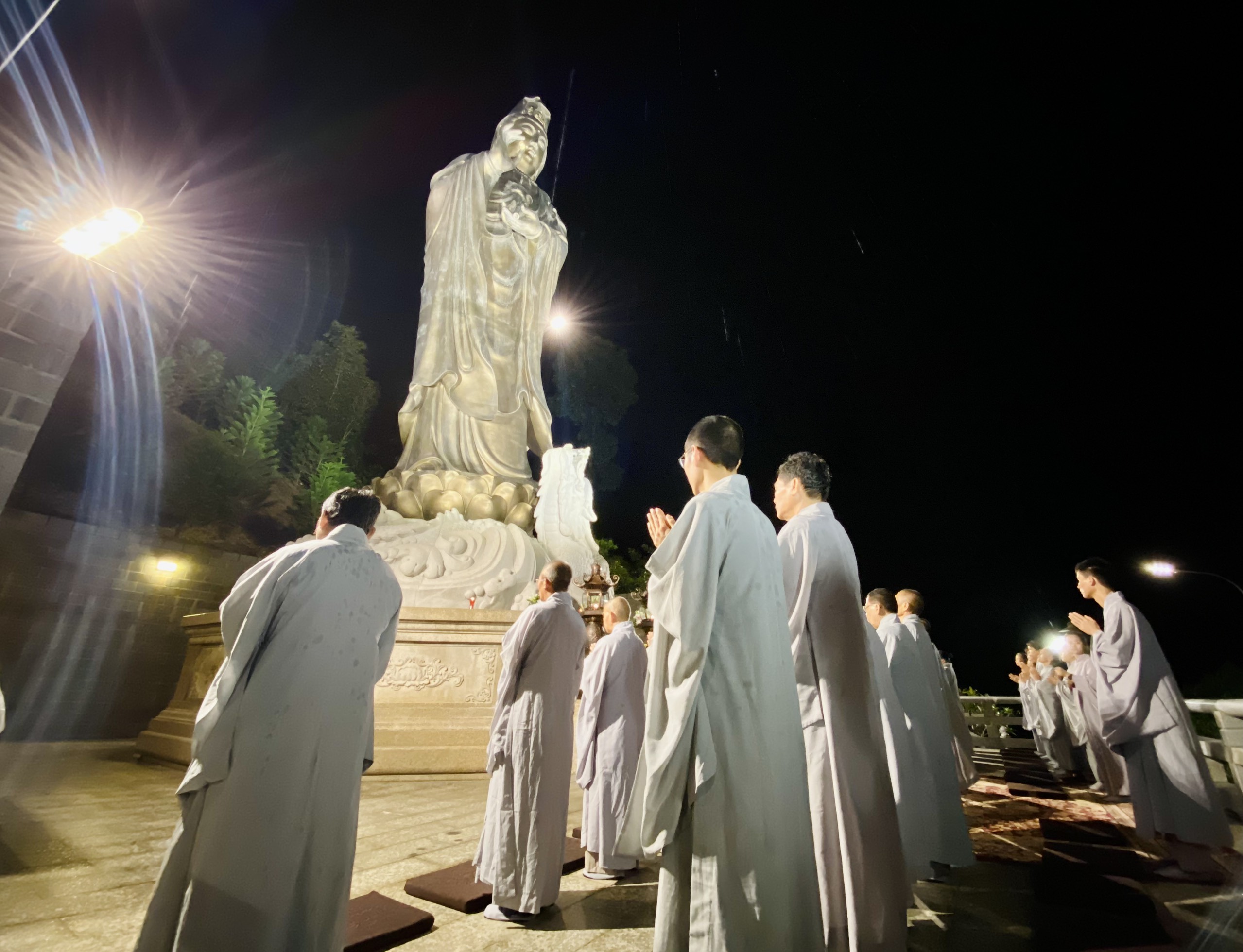 On the morning of October 14th (Lunar September 19th, the Year of the Tiger), Dai Tung Lam Hoa Sen practitioners, Buddhists and fellows recited the Saddharma Puṇḍarīka Sūtra in front of the open-air statue of Bodhisattva Avalokitesvara.